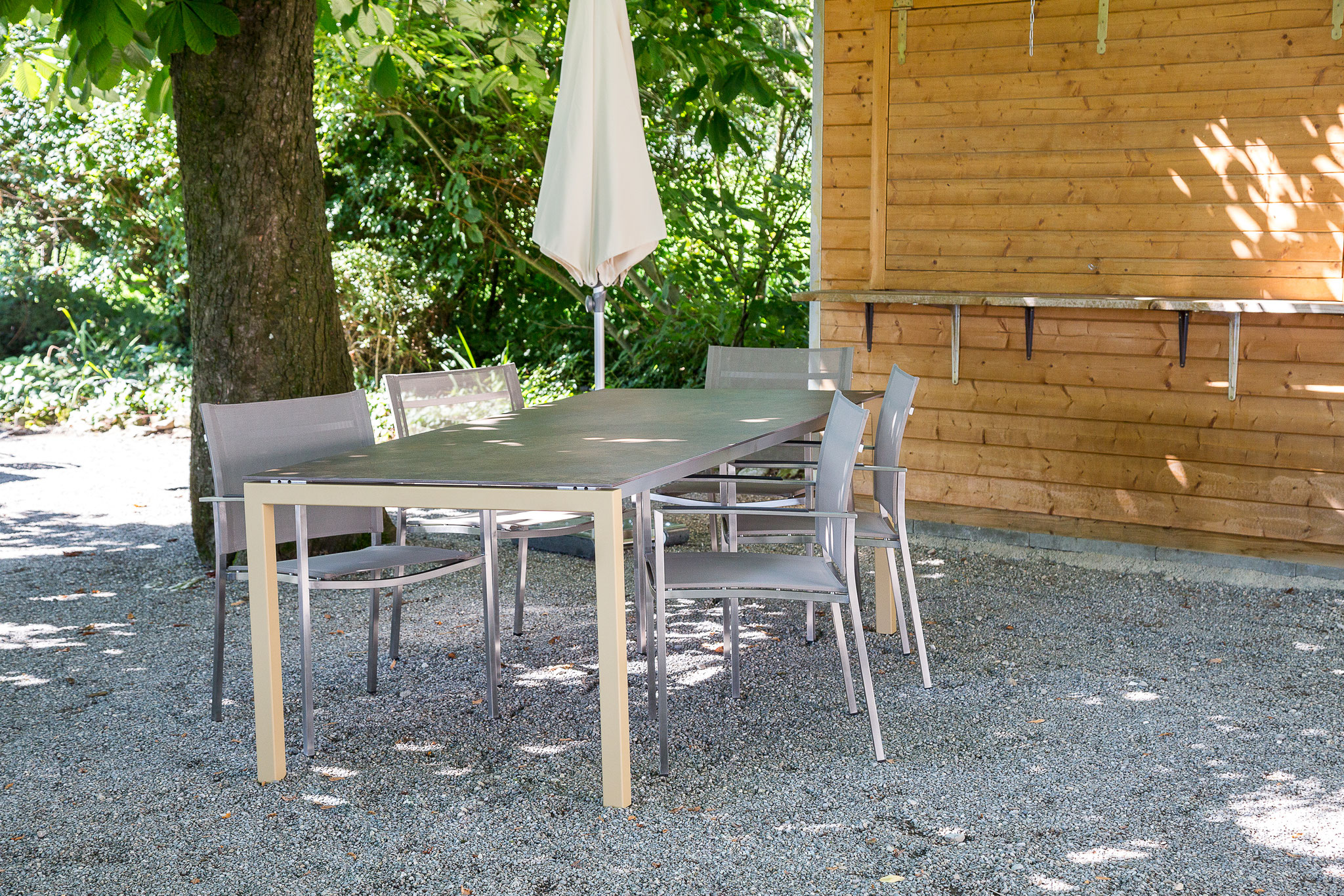 LUIZ verfügt über ein breites Angebot an Ausziehtischen und fertigt viele Gartentische auf Wunsch in Extragrössen her.