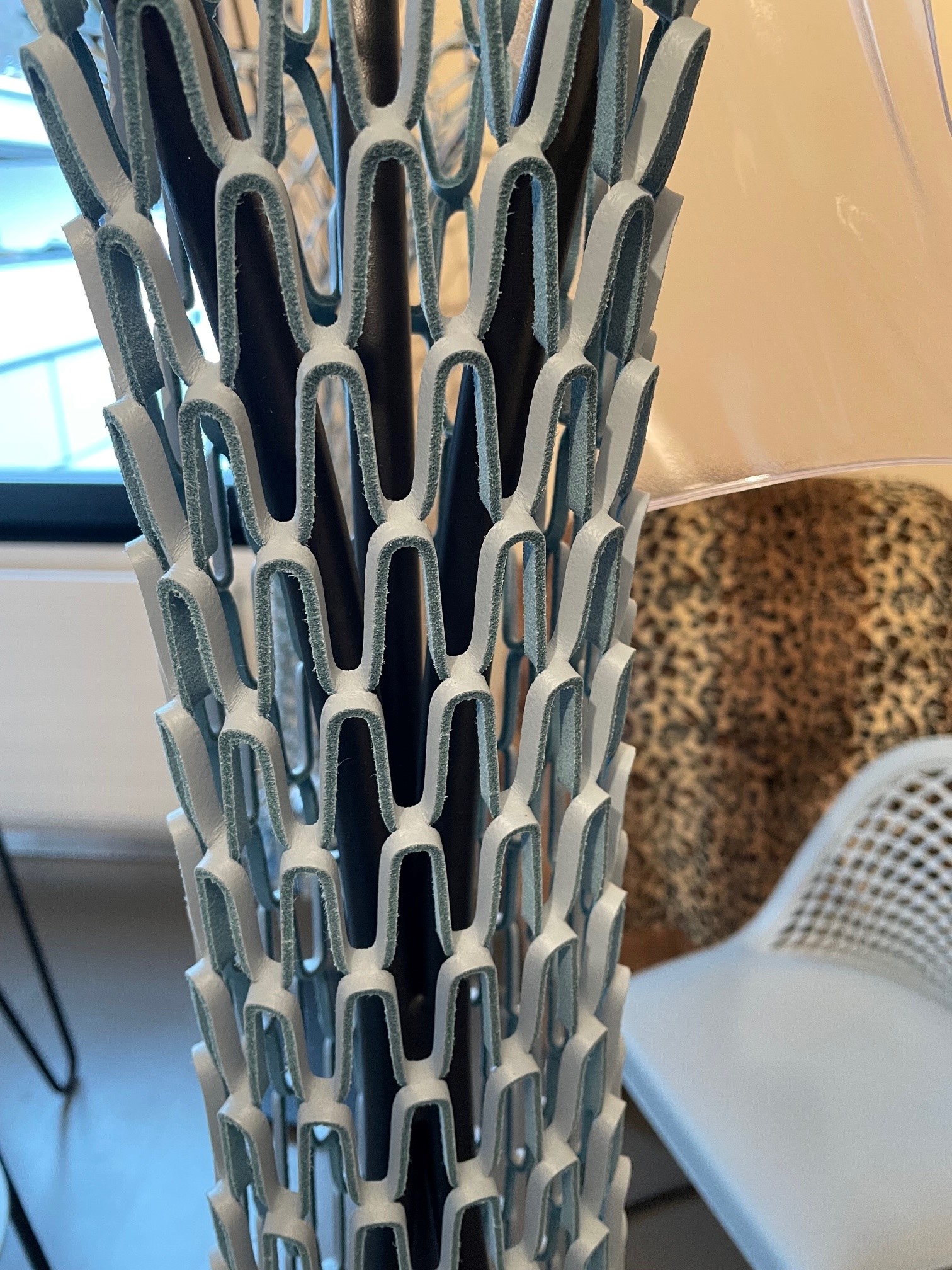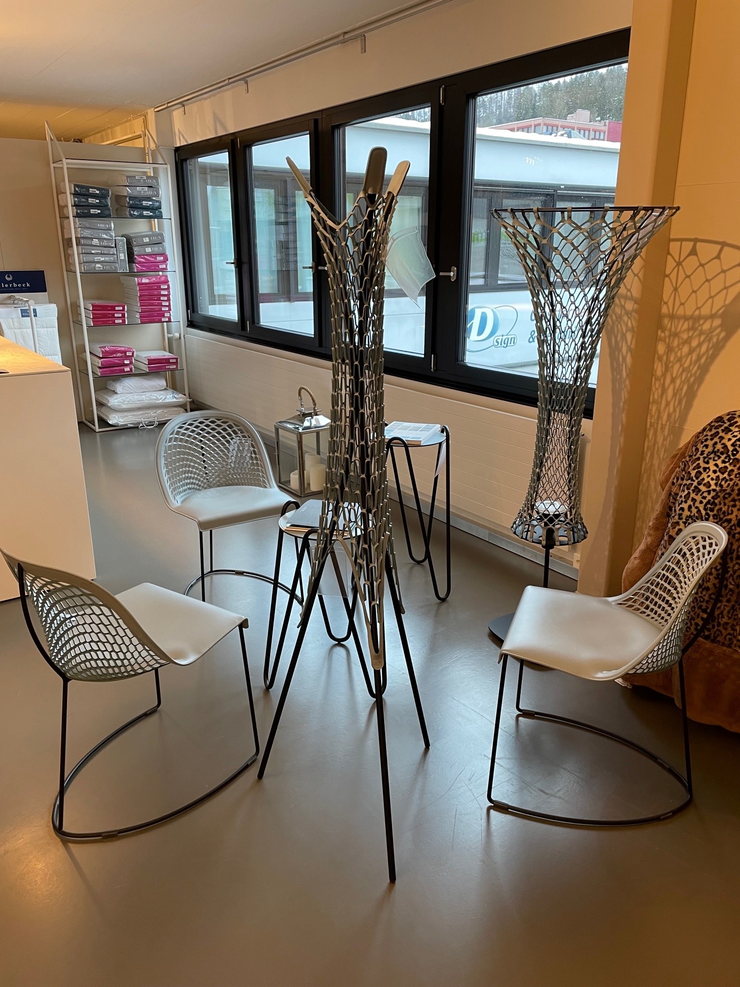 Passend in einem Schlafzimmer oder Gang. Spezielles Design aus Italien. Kann man auch Einzel erhalten: Stehleuchte Fr.980.- 50% Fr.490.- Kleiderständer Fr. 460.- 50% 230.- Beistelltisch niedrig, 63 cm Fr. 260.- 50% 130.- Beistelltisch hoch 73 cm Fr.290 50% 145.- 1 Stuhl Fr. 720.- 50% Fr.360.-
